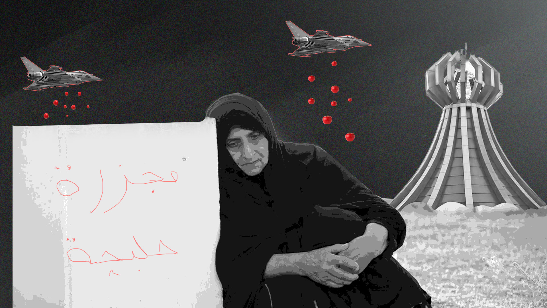 في أحد شوارع حلبجة، بقيت امرأة ممددة على الأرض وذراعها ما زالت تحتضن طفلها.